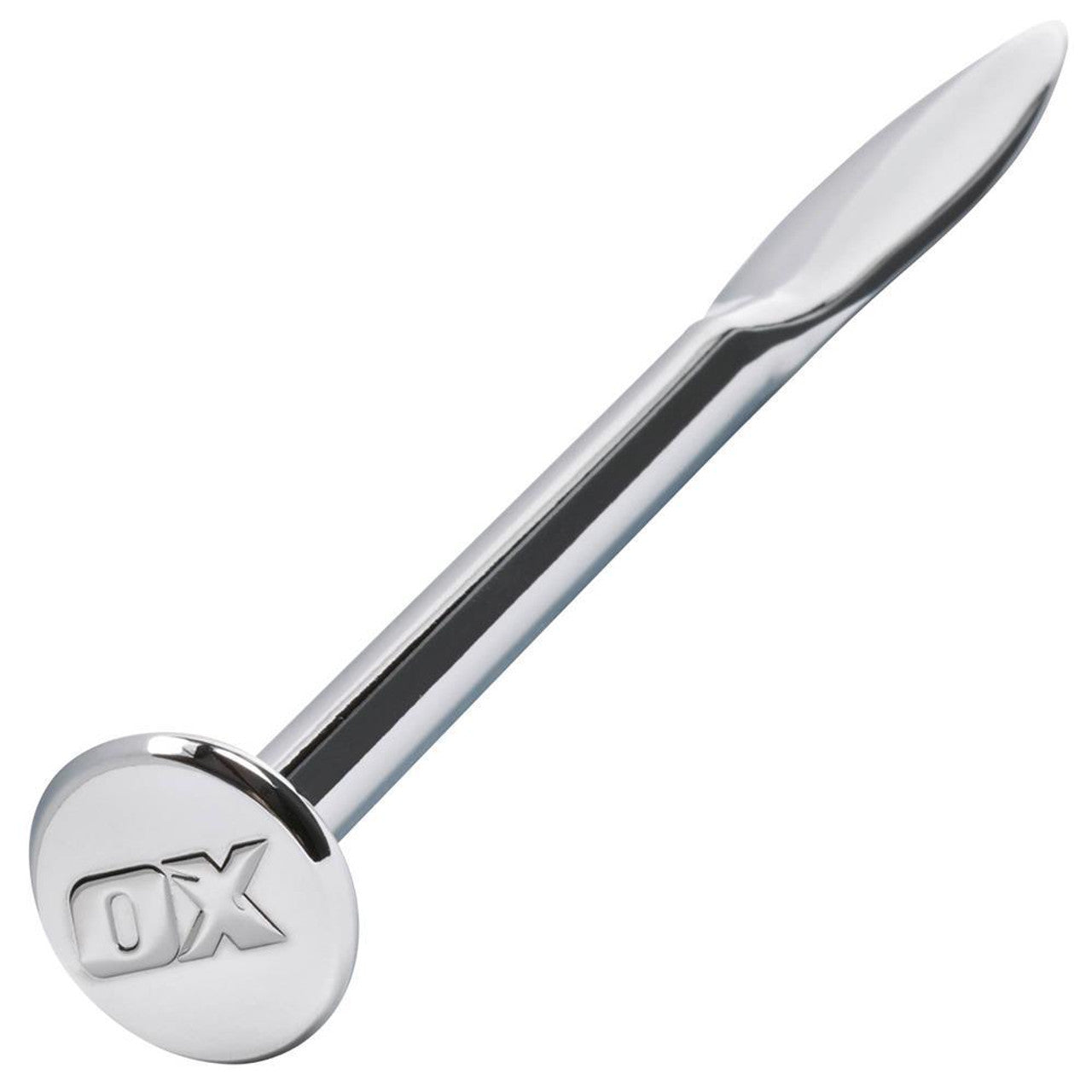 OX Pro 152mm Line Pins (2 pc pack) feature high strength taper ground points and edges to facilitate easier driving into mortar joints. Made from highly durable forged carbon steel, they are chrome-plated for a fine finish, extra wear resistance and rust prevention.